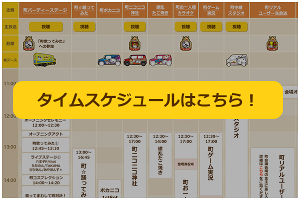 - 町☆踊ってみたに参加を希望される方は、13:00に町☆踊ってみたブースにお集まりください。